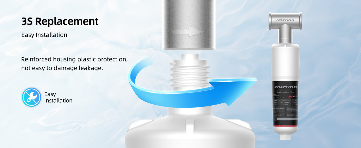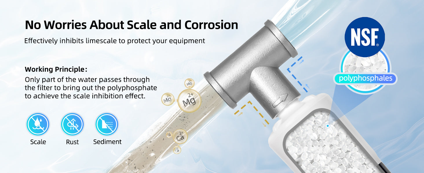 - Food-grade Safe materials: Our scale inhibitor cartridge is NSF-tested and certified to effectively prevent scale buildup, keeping your appliances protected and performing at their best. Made with food-grade materials, it ensures safe, pure, and healthy water for your entire family.