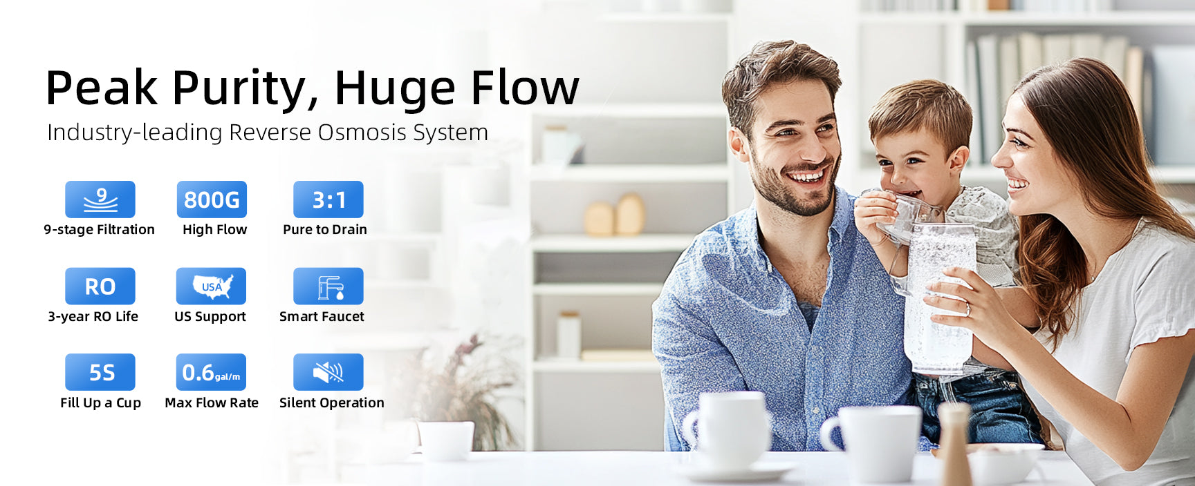 Our RO system only requires flushing water during the initial setup or when changing filters. Otherwise, you can drink directly from the faucet immediately.