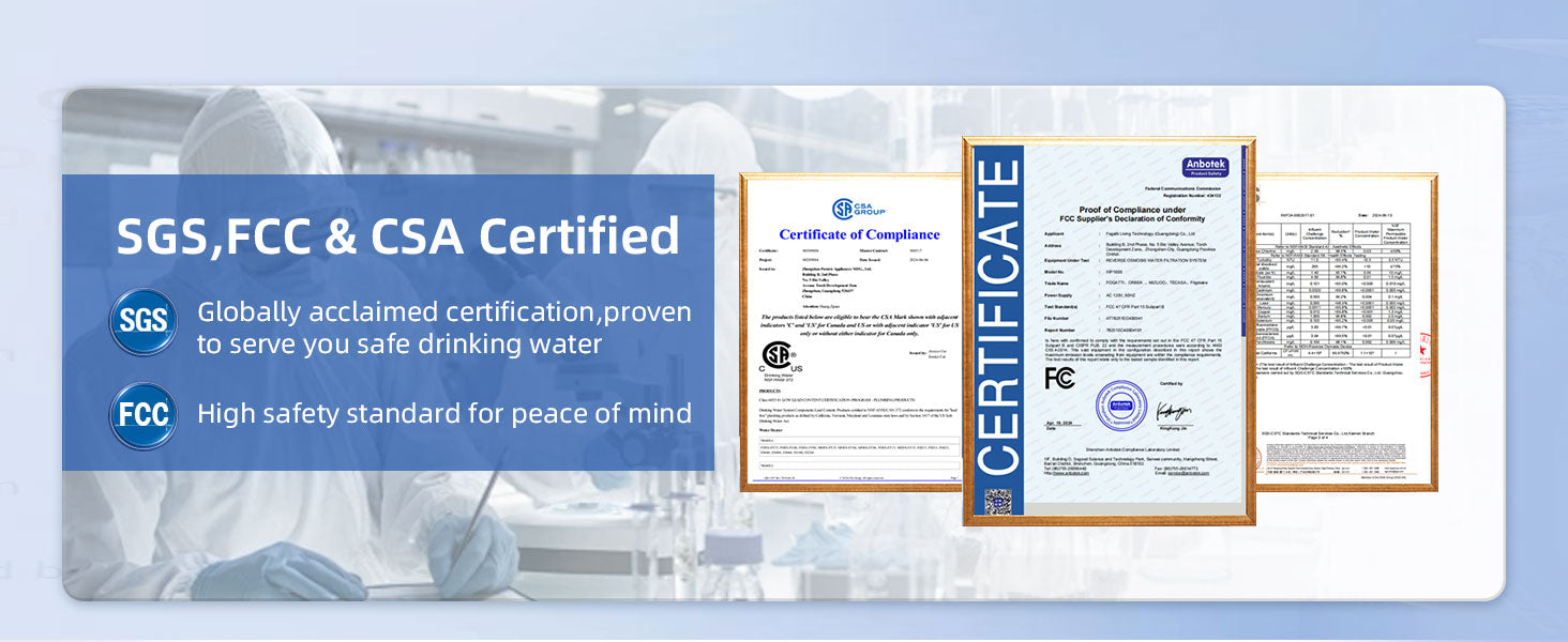 - REVERSE OSMOSIS SYSTEM MEETS NSF/ANSI STANDARDS: This RO system has been tested by CSA and SGS according to NSF/ANSI 42, 58, and 372 standards. Say goodbye to the hidden dangers of tap water.