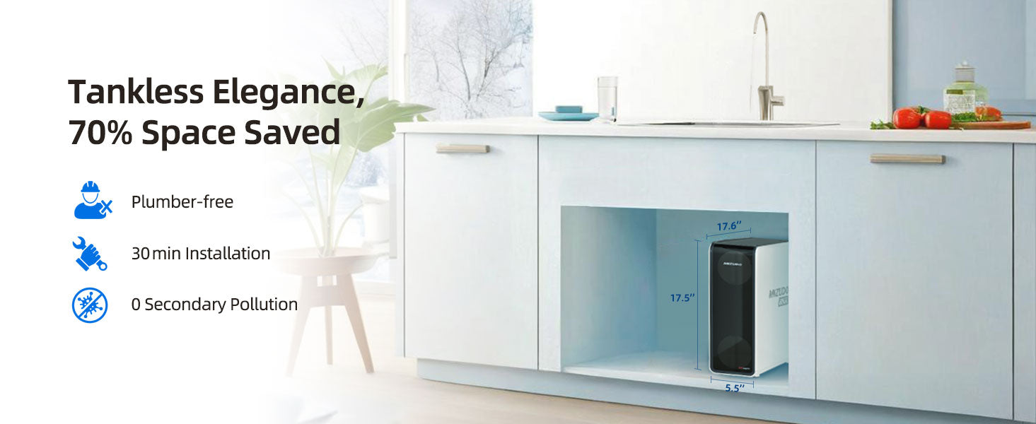 - TANKLESS SYSTEM: Our under sink water filtration system saves 70% of cabinet space, ensuring you fresh and healthy drinks with every use.