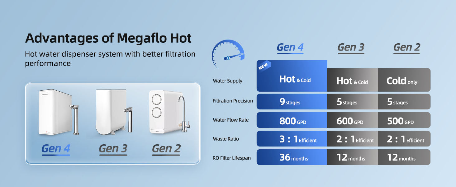 - 【All-in-1 RO Purification & Instant Heating System】Tired of waiting for water to boil and unsafe water quality from traditional kettles and dispensers? Our industry-first under-sink RO filter system combines water purification and instant heating, offering a huge 2.1L/m high flow rate and 6-level temperature control to meet various needs. No more worries about limescale or rust buildup during heating, thanks to the advanced 9-stage reverse osmosis filtration system that removes up to 99.99% of pollutants as small as 0.0001 microns, including heavy metals, chlorine, fluoride, cadmium, TDS, PFAS, etc.