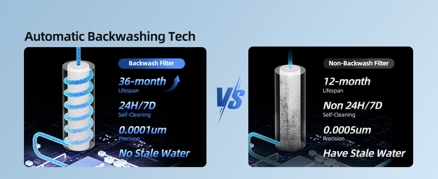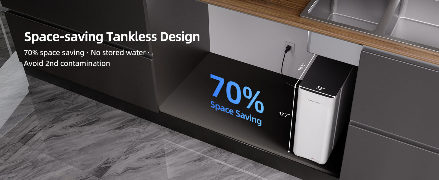 - 【Unrivaled 9-Stage Filtration System】Frustrated upon diminishing flow rates and decreasing purity? Our self-cleaning 9-stage RO filtration system ensures an extended filter lifespan and durable performance for up to 3 years. With a filtration area that is 2X larger, our water filter prevents clogging and enhances filter efficiency by up to 70% compared to traditional tankless ro system.