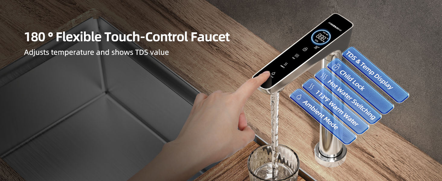 - 【Smart Display Touch Faucet】With our high-end touchscreen faucet, you can view water temperature, TDS level, filter status, and adjust desired temps in a flash. It also features child lock and temp indicators for added safety. Embrace smart living with this reverse osmosis water filtration system!