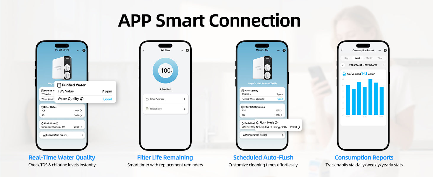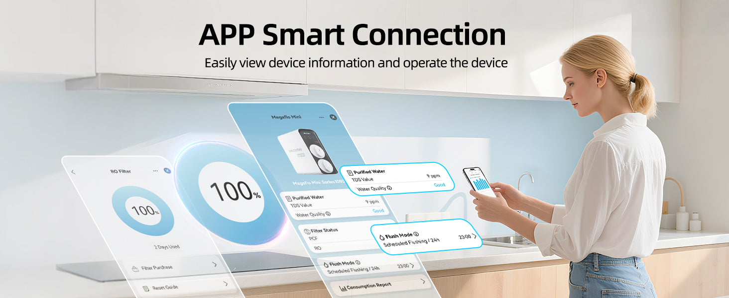 - 【Smart WiFi for Real-Time Monitoring】Remotely control your tankless ro system via app—track water quality, filter life, and TDS in real time. Get instant filter replacement alerts and customize auto-flush schedules for always-fresh, pure flow. The smart LED faucet also indicates TDS levels and filter replacement status for your convenience.