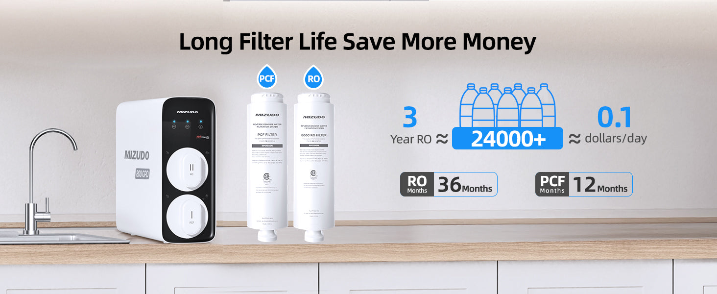 - 【Eco-Friendly & Cost-Saving】Unrivaled 3:1 pure-to-drain—produce 3 cups of purified water for every 1 cup of wastewater, saving up to 1200% more water than traditional 1:4 RO systems. The RO filter lasts up to 3 years, with daily costs as low as $0.09, making this drinking water filter system both eco-friendly and economical.