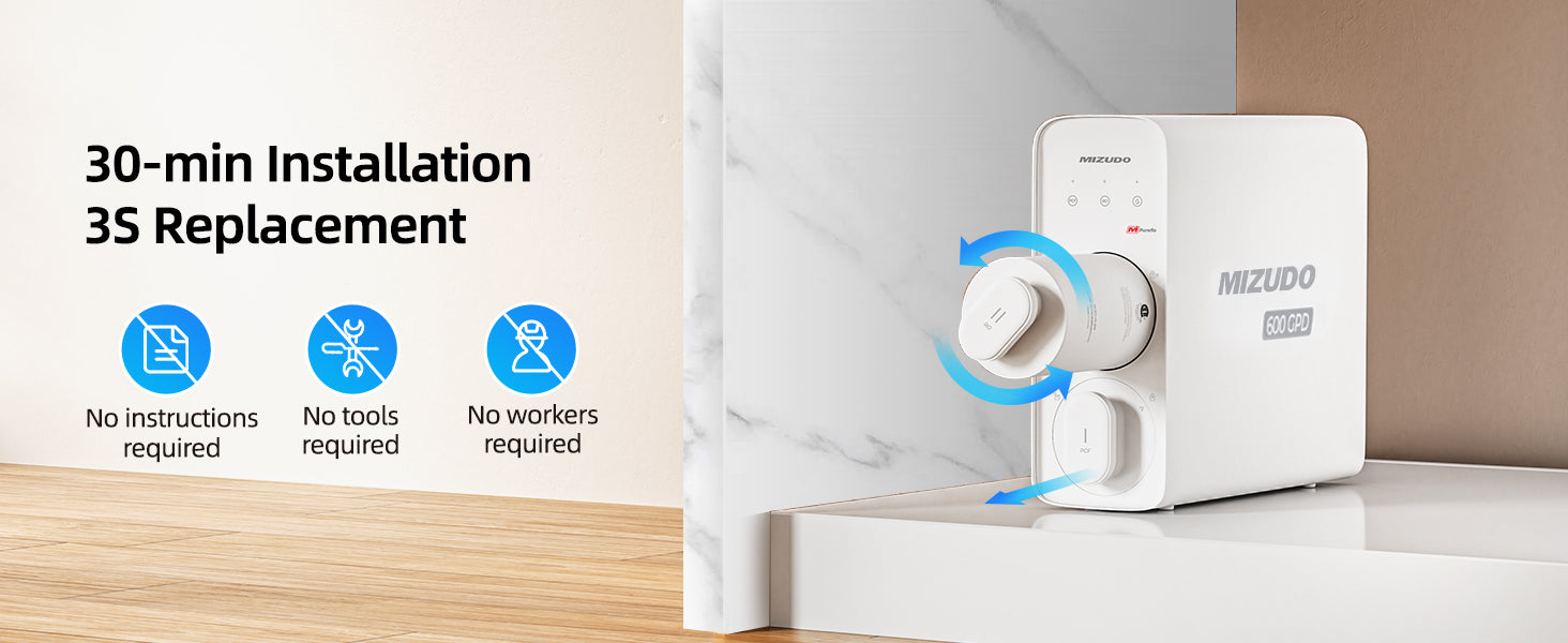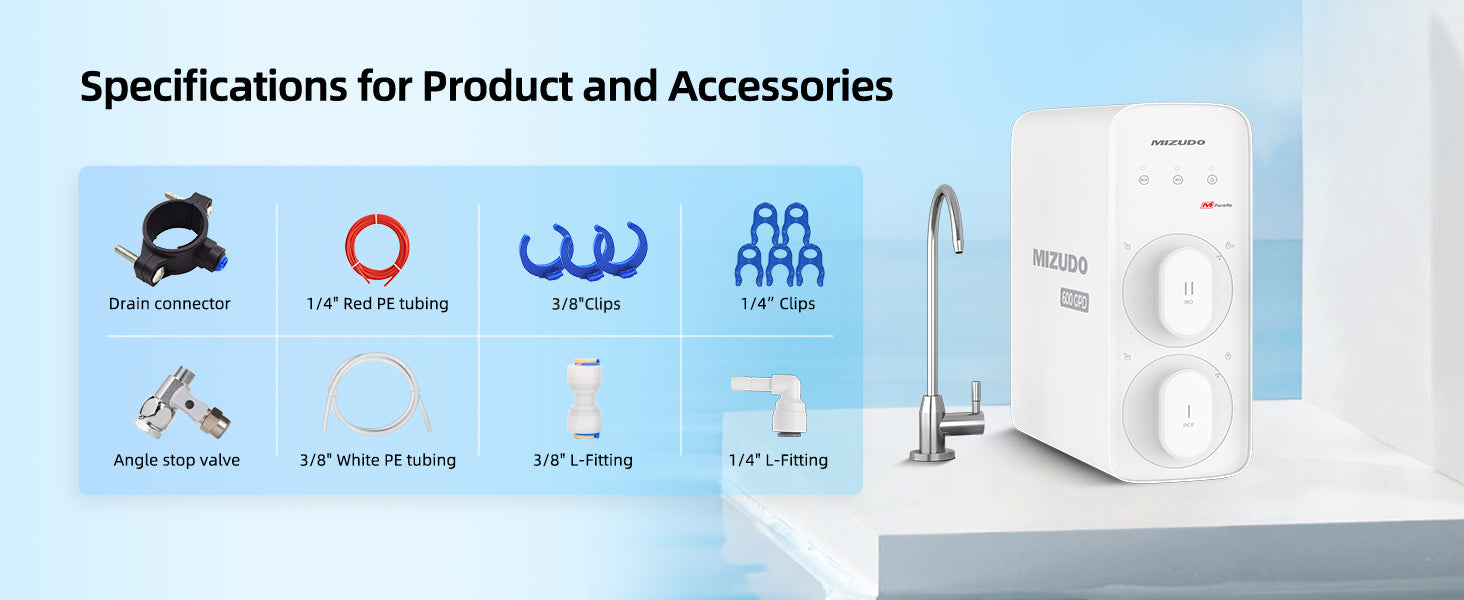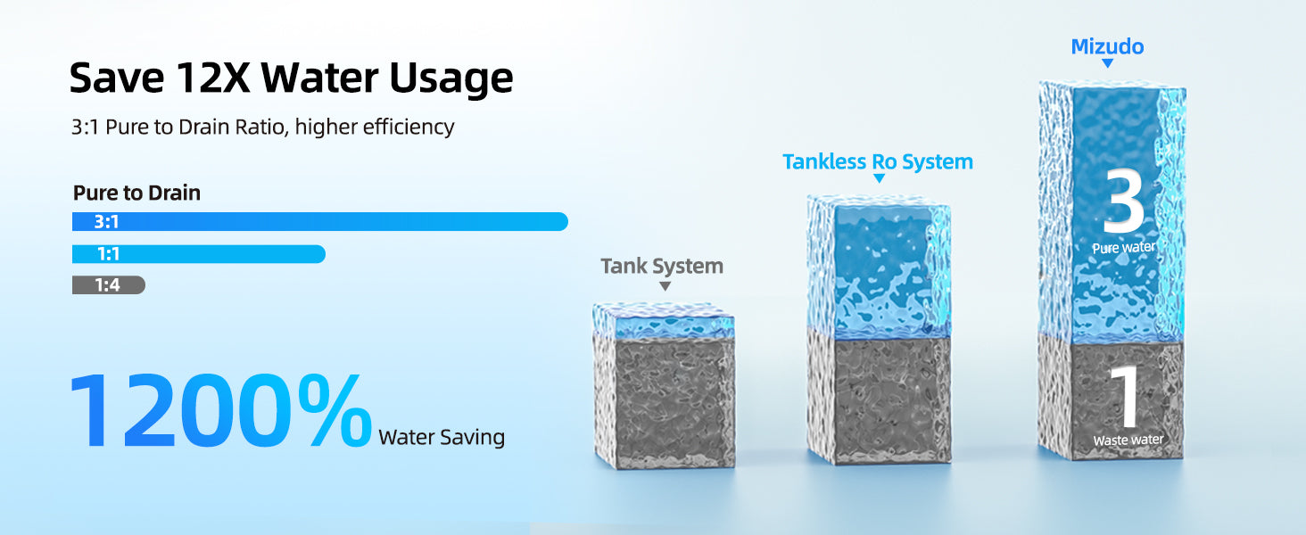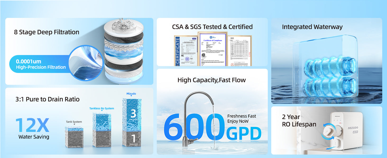 - 【Leak-Proof and Quiet Operationr】No worries about leaks and noise.MIZUDO’s RO system is built to last with reinforced, high-pressure resistant panels. Plus, our advanced noise reduction technology keeps operation at a whisper-quiet 42 decibels. Enjoy your water without distractions!