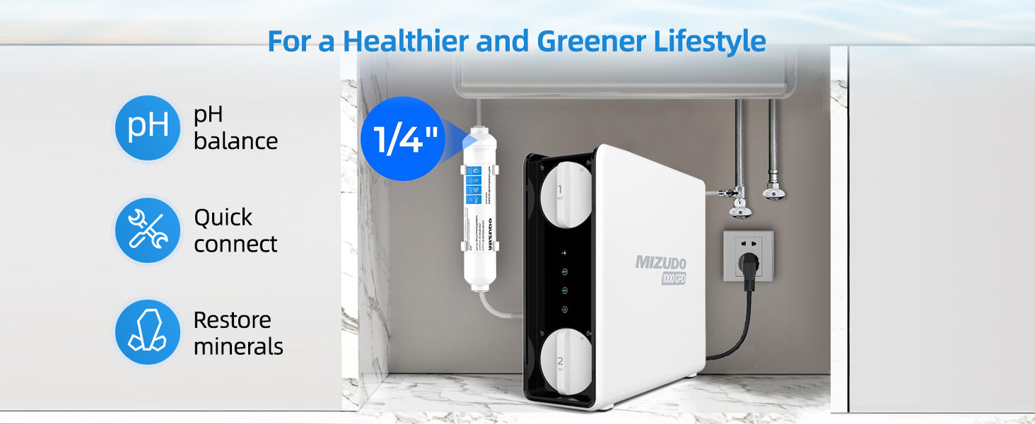 - Effortless Installation: The PH water filter cartridge easily connects to an under-sink reverse osmosis system with a 1/4-inch fitting for a hassle-free setup. For optimal mineralization, ensure it's connected to the cold water supply (40-100°F).