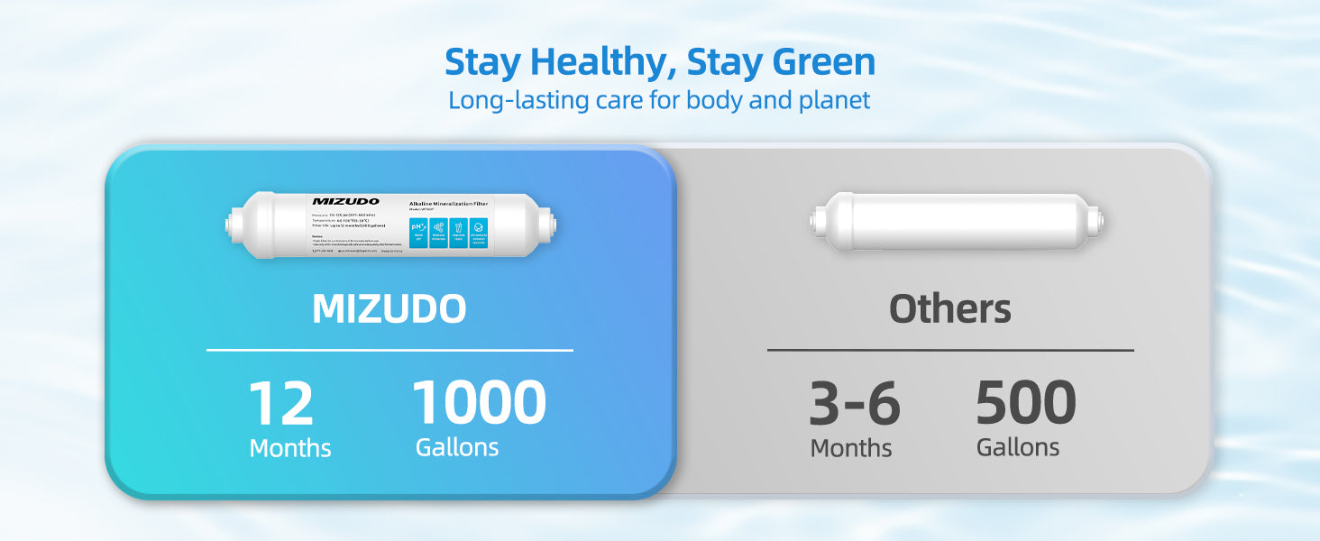 - Excellent service life: Our water remineralizer is designed for extended longevity, lasting up to 12 months. With a high capacity of 1,000 gallons, you won’t need to frequently replace bottled water. For just $2.25 a month, you can easily meet your hydration needs while enjoying significant cost savings.