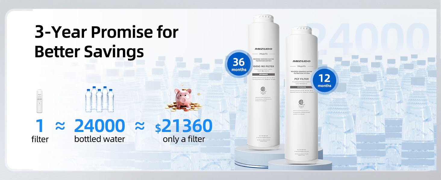 - 【 Cleaner Water&Longer Life】Upgrade your water with advanced 9-stage reverse osmosis filtration that removes 1,000+ harmful contaminants—including heavy metals, chlorine, lead, and more.The 0.0001-micron RO membrane eliminates 99.99% of harmful substances, ensuring every drop is clean and safe. RO filter lasts up to 3 years, PCF filter up to 1 year—delivering long-lasting performance and better value.