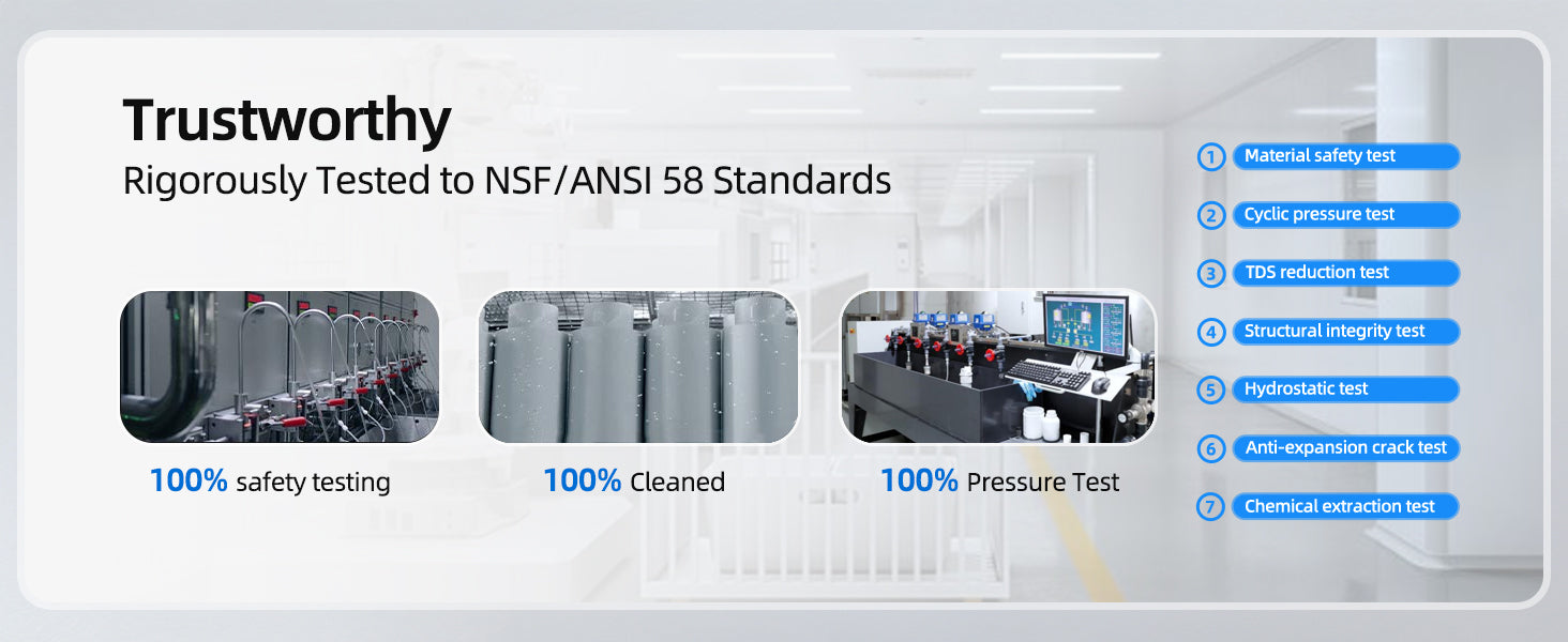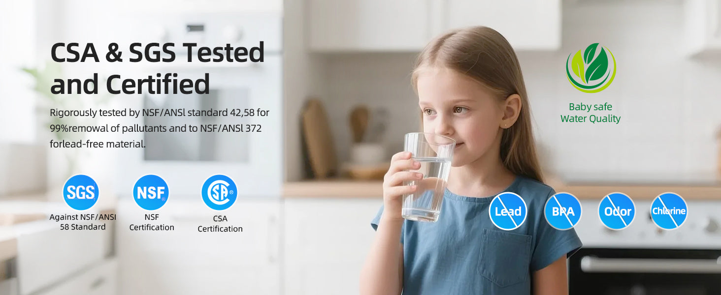 - 【NSF/ANSI 372&53&42 Certified】MIZUDO RO Water Purifier is certified by SGS and complies with NSF/ANSI 58, 42, and 372 standards, as well as FCC regulations—ensuring top-tier water quality you can trust. It effectively removes over 1,000 harmful contaminants from tap water, including chlorine, fluoride, calcium, arsenic, heavy metals, unpleasant odors, TDS, PFAS, and PFOA/PFOS.