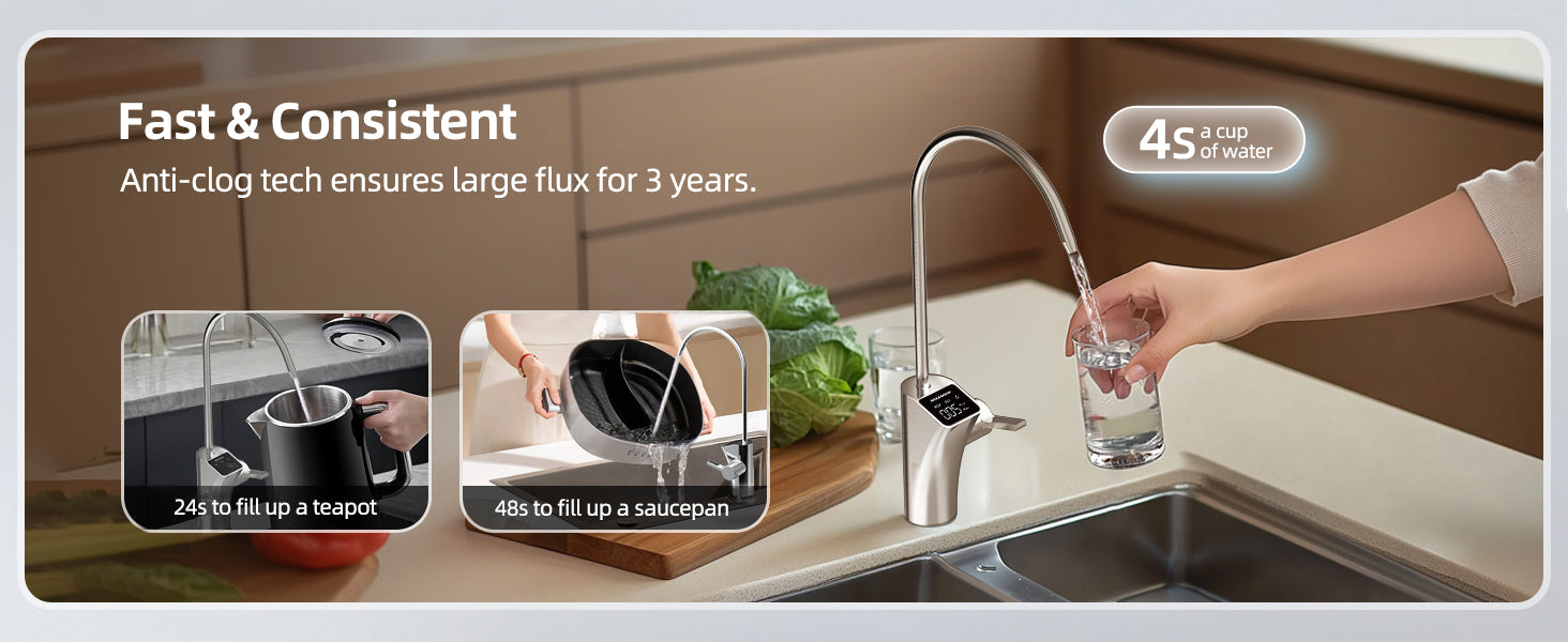 - 【1000 GPD High Capacity & Fast Flow】 Our advanced water osmosis filtration system delivers a full glass of water in just 4 seconds—perfect for busy households, entertaining guests, or staying hydrated all day long.